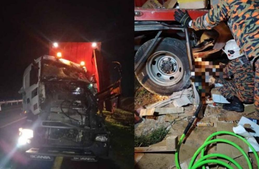 Pemandu lori maut tersepit dalam nahas dua kenderaan di Lebuhraya PLUS