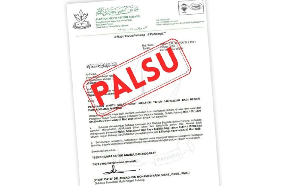 Jabatan Mufti Pahang nafi surat tular waktu solat Aidilfitri