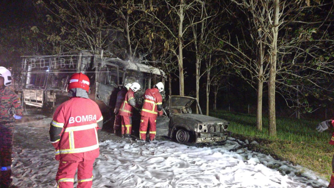 Pemandu pikap rentung dalam nahas dengan treler di Lebuh Raya Utara-Selatan